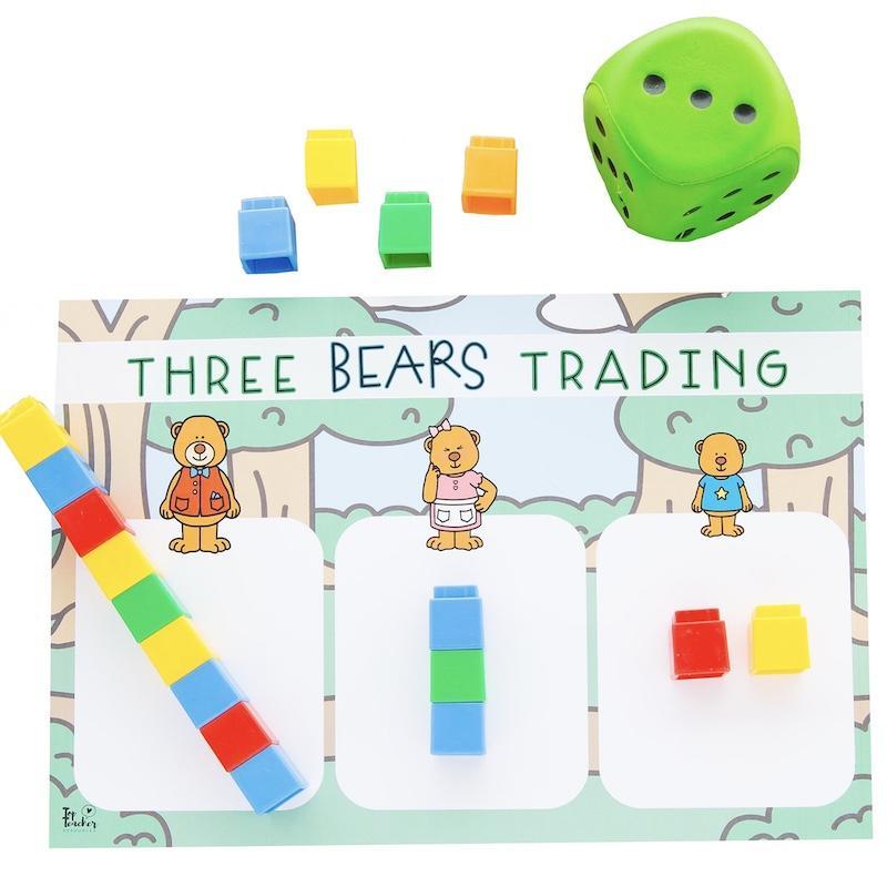 The Three Bears Trading Game is designed for flexible, repeated use and provides a fantastic bridge between concrete materials and abstract number concepts. Starting with a magic number of 3, the game allows students to experience repeated cycles of trading before moving to larger groupings such as 4, 5, or even 10 - eventually leading them naturally into place value learning and language.